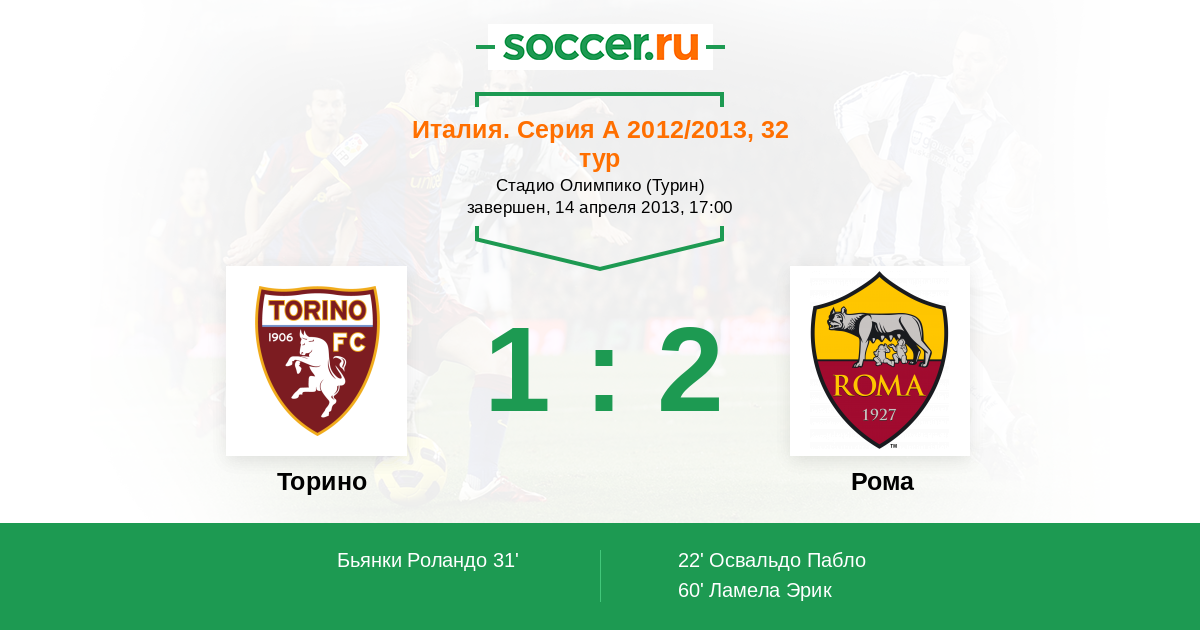 60' (1:2) Ламела Эрик (8) (Тотти Франческо (10))