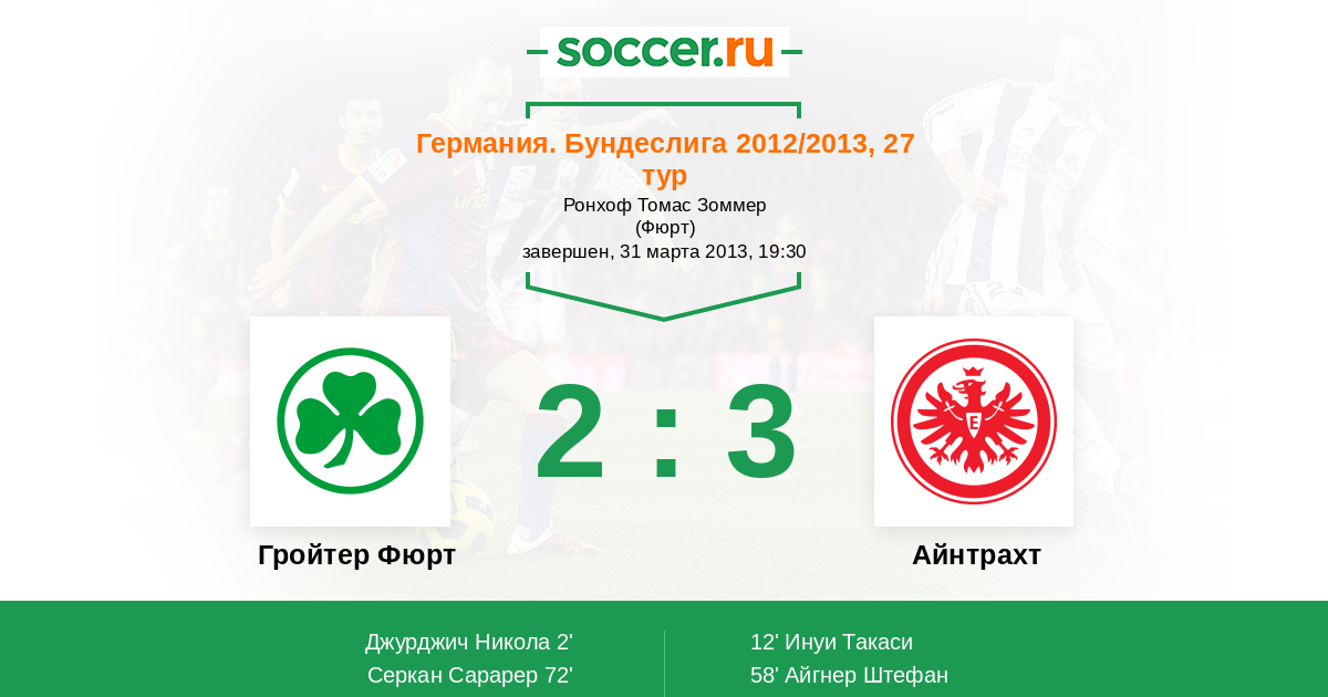 72' (2:3) Серкан Сарарер (23) (Циммерманн Маттиас (38))