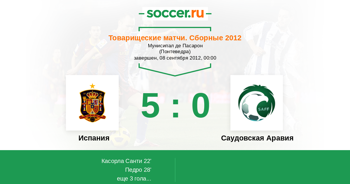 Запасные: Рамос Серхио (с 46'), Хави (с 46'), Вилья Давид (с 53'), Иньеста Андрес (с 61'), Сильва Давид (с 61'), Касильяс Икер (с 72')