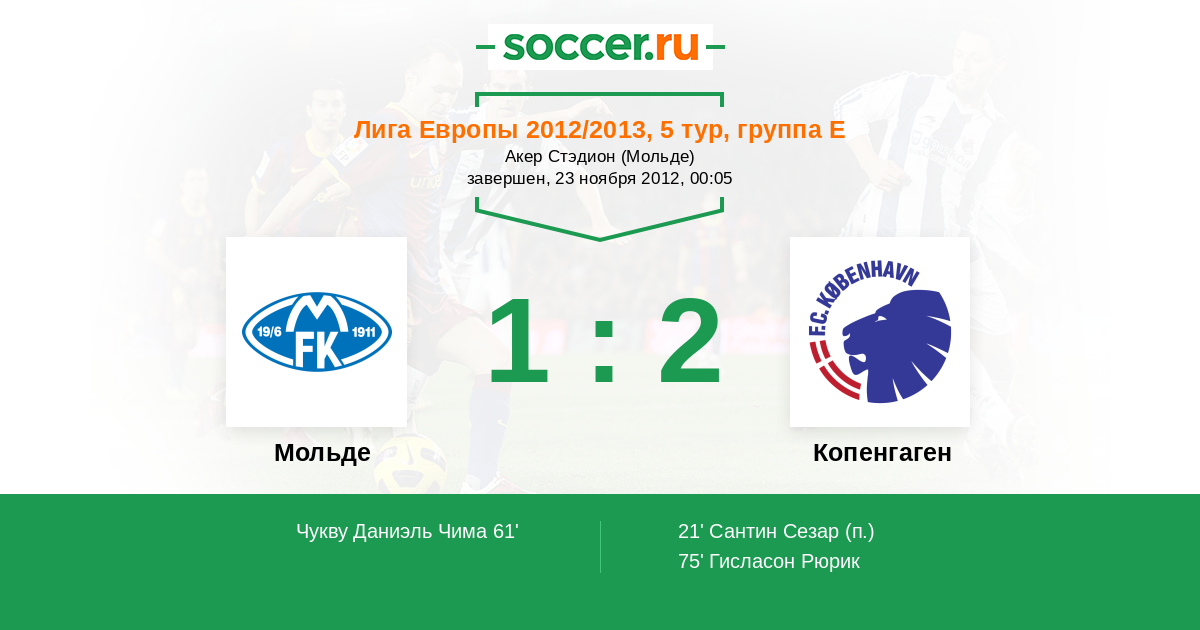 75' (1:2) Гисласон Рюрик (19) (Сантин Сезар (11))