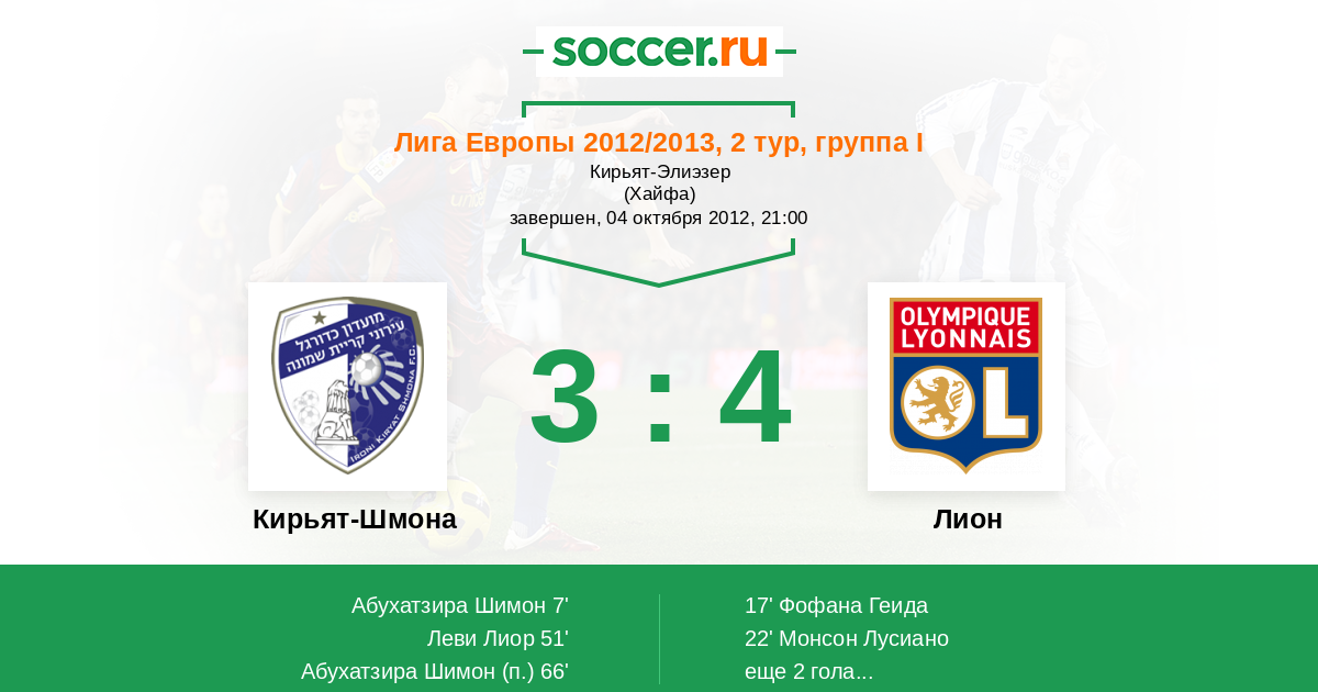Запасные: 25 Бензья Яссин (с 54'), 17 Мальбранк Стид (с 63'), 10 Ляказетт Александр, 14 Дабо Мухамаду, 15 Бишевац Милан, 16 Лопеш Антони, 18 Гомис Бафетимби