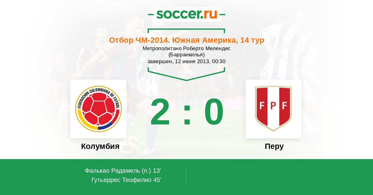 Запасные: Гуарин Фреди (с 77'), Муриэль Луис (с 81'), Мехия Александер (с 83'), Сапата Кристиан, Кинтеро Карлос, Варгас Камило, Мондрагон Фарид, Медина Стефан, Валенсия Эдвин, Бакка Карлос, Сото Элкин, Москера Аквивальдо