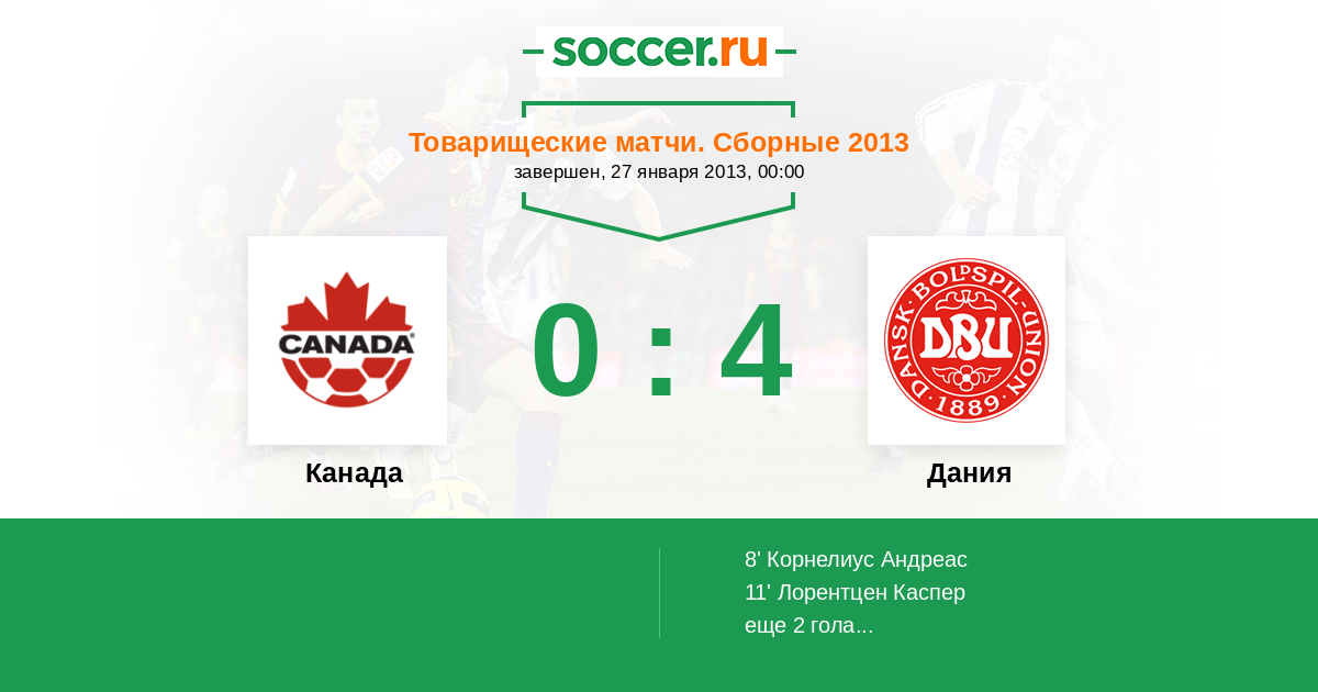 8' (0:1) Корнелиус Андреас (Роммедаль Деннис)