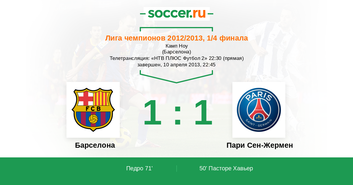 50' (0:1) Пасторе Хавьер (27) (Ибрагимович Златан (18))