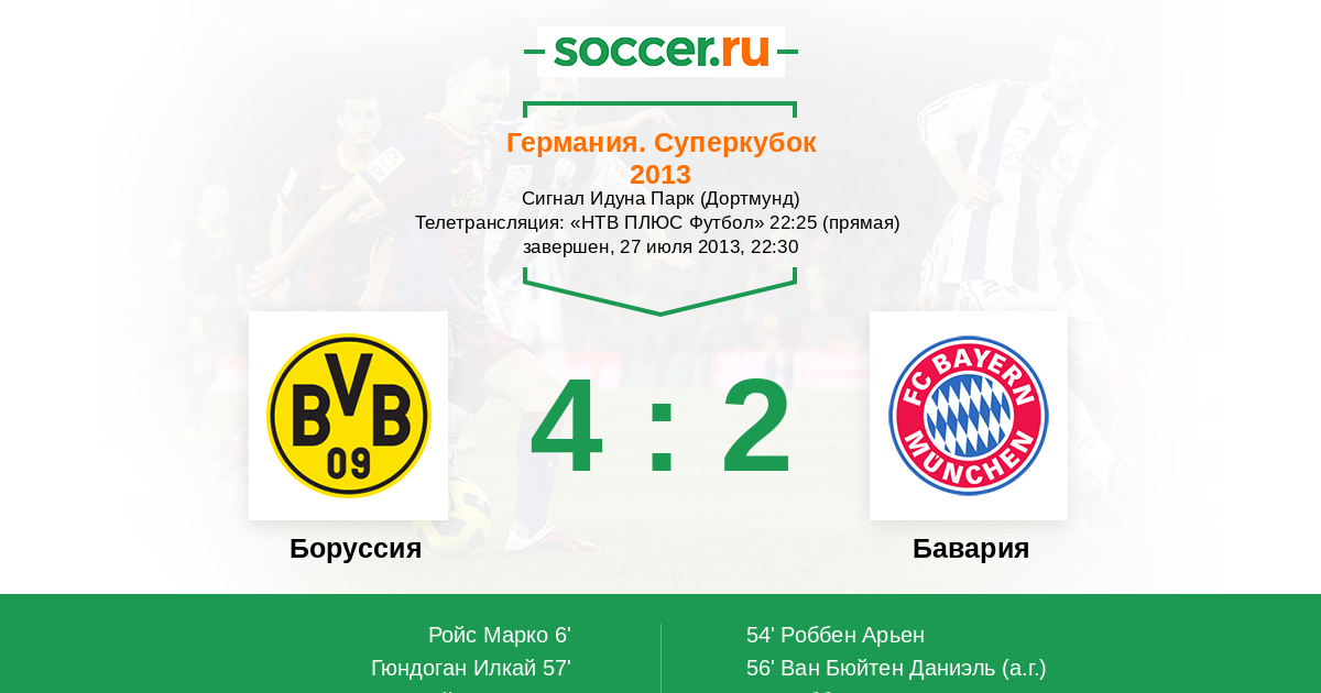 6' (1:0) Гол после добивания Ройс Марко (Бендер Свен)