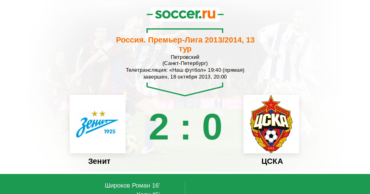 16' (1:0) Широков Роман (15) (Аршавин Андрей (23))