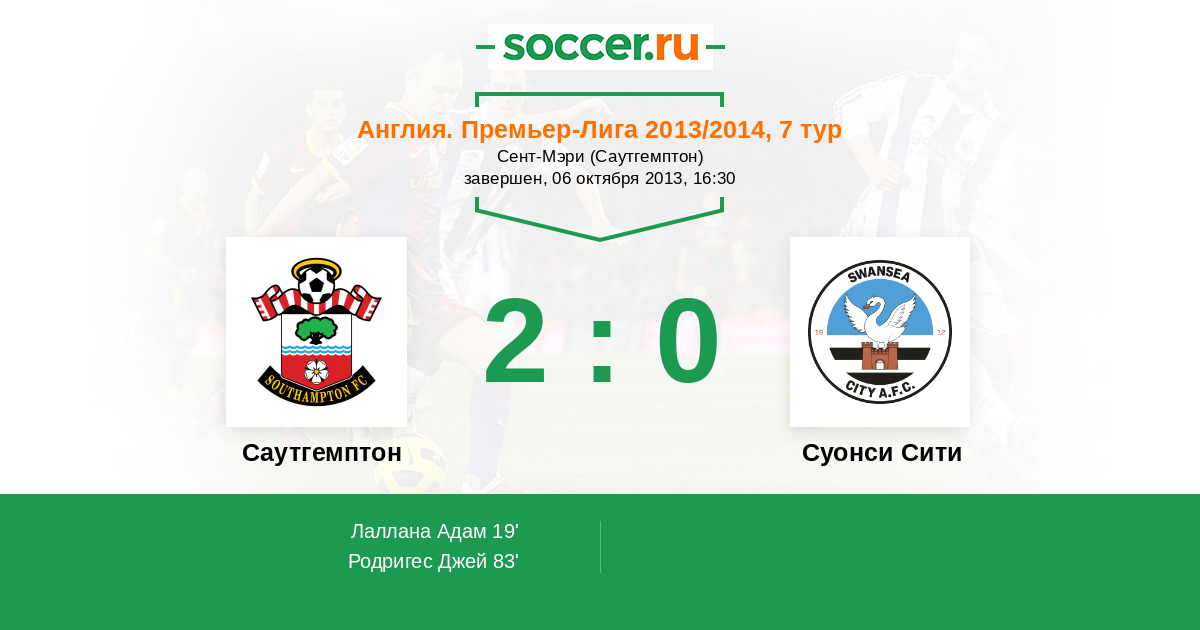 19' (1:0) Лаллана Адам (20) (Дэвис Стивен (8))