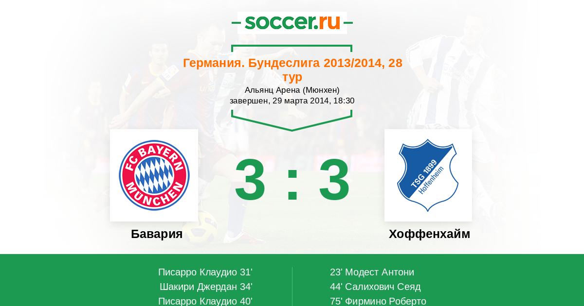 40' (3:1) Писарро Клаудио (14) (Рибери Франк (7))