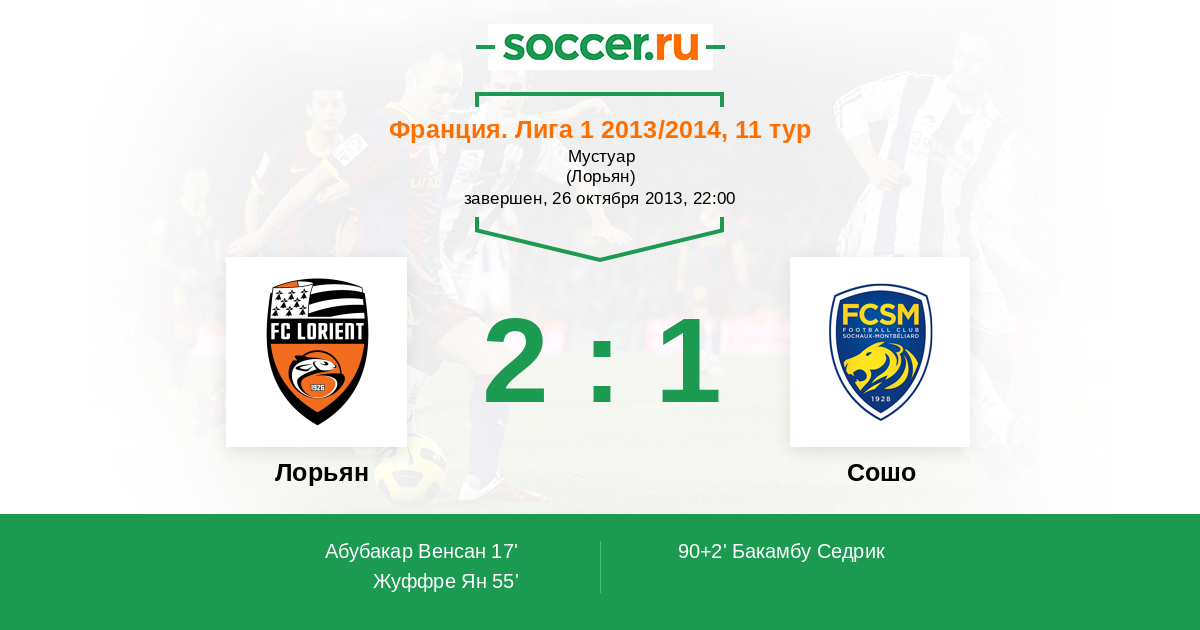 90+2' (2:1) Бакамбу Седрик (22) (Камара Абдул (13))