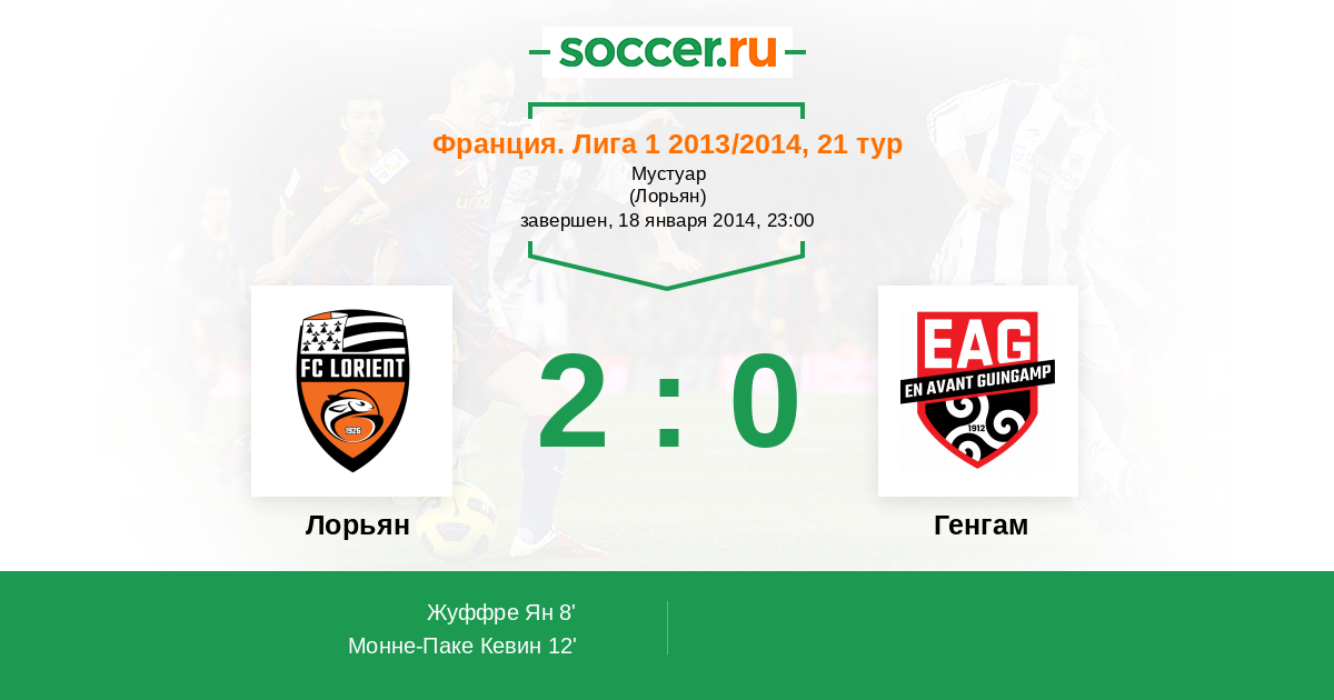 8' (1:0) Жуффре Ян (8) (Абубакар Венсан (9))