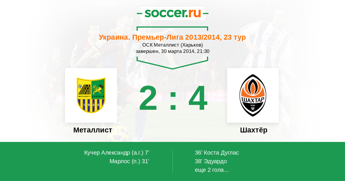 36' (2:1) Коста Дуглас (20) (Степаненко Тарас (6))