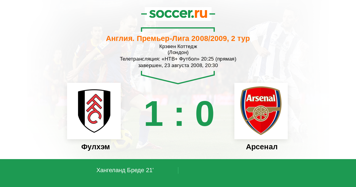 21' (1:0) Хангеланд Бреде (Буллард Джимми)