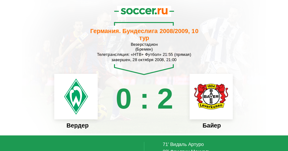 71' (0:1) Видаль Артуро (Хельмес Патрик)