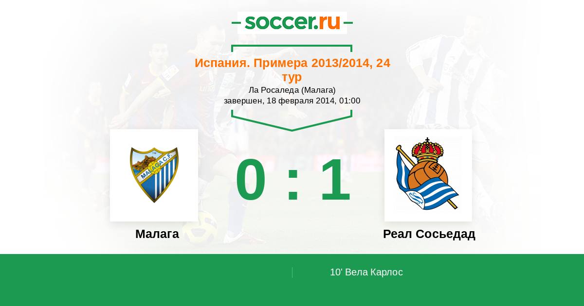 10' (0:1) Вела Карлос (11) (Анхель Хосе (20))