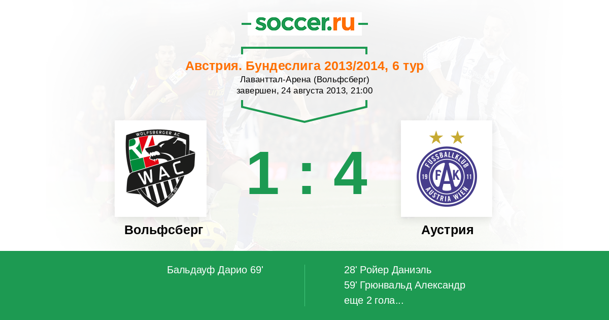 Запасные: 17 Йованович Ненад (с 27'), 22 Салентиниг Мартин (с 61'), 9 Сеговия Даниэль (с 66'), 4 Суппан Гернот, 21 Фрисахер Макс, 29 Топчагич Михрет, 23 Готаль Сандро
