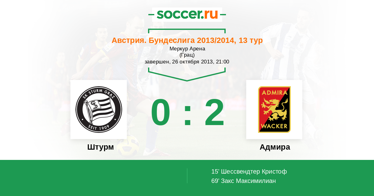 15' (0:1) Шессвендтер Кристоф (3)