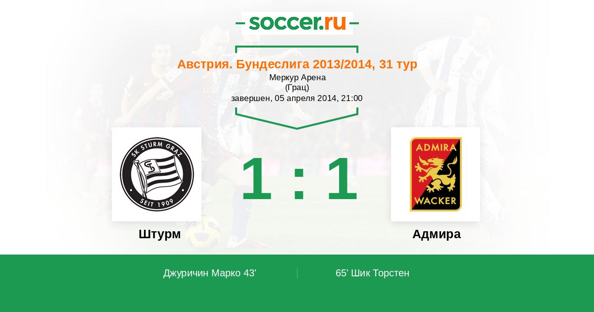 65' (1:1) Шик Торстен (28)