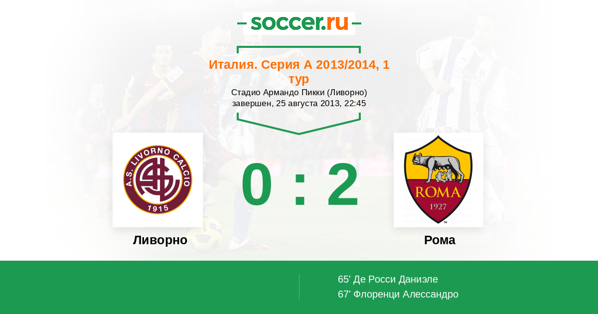 65' (0:1) Де Росси Даниэле (16) (Тотти Франческо (10))