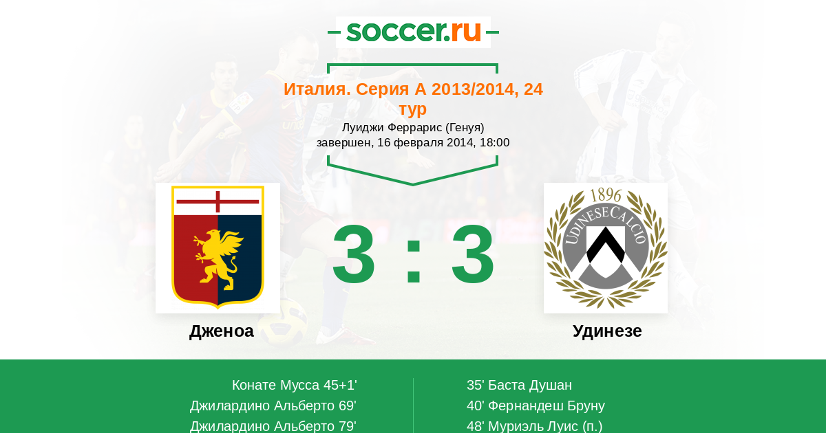 45+1' (1:2) Конате Мусса (77) (Марчезе Джиованни (15))