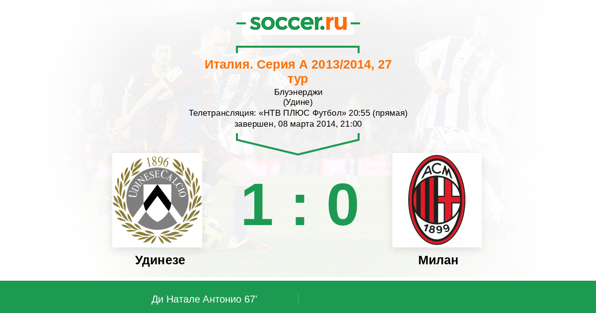 67' (1:0) Ди Натале Антонио (10) (Фернандеш Бруну (32))