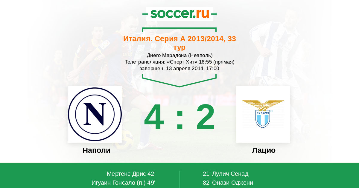 67' (3:1) Игуаин Гонсало (9) (Инсинье Лоренцо (24))