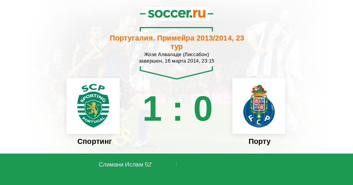 52' (1:0) Слимани Ислам (Мартинш Андре)