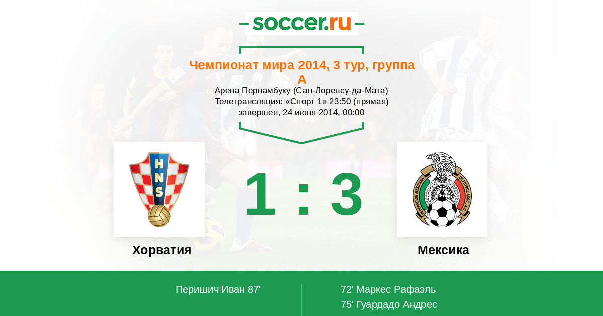 82' (0:3) Эрнандес Хавьер (14) (Маркес Рафаэль (4))
