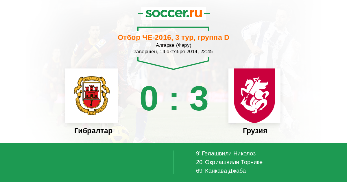 20' (0:2) Окриашвили Торнике (15) (Джано (10))