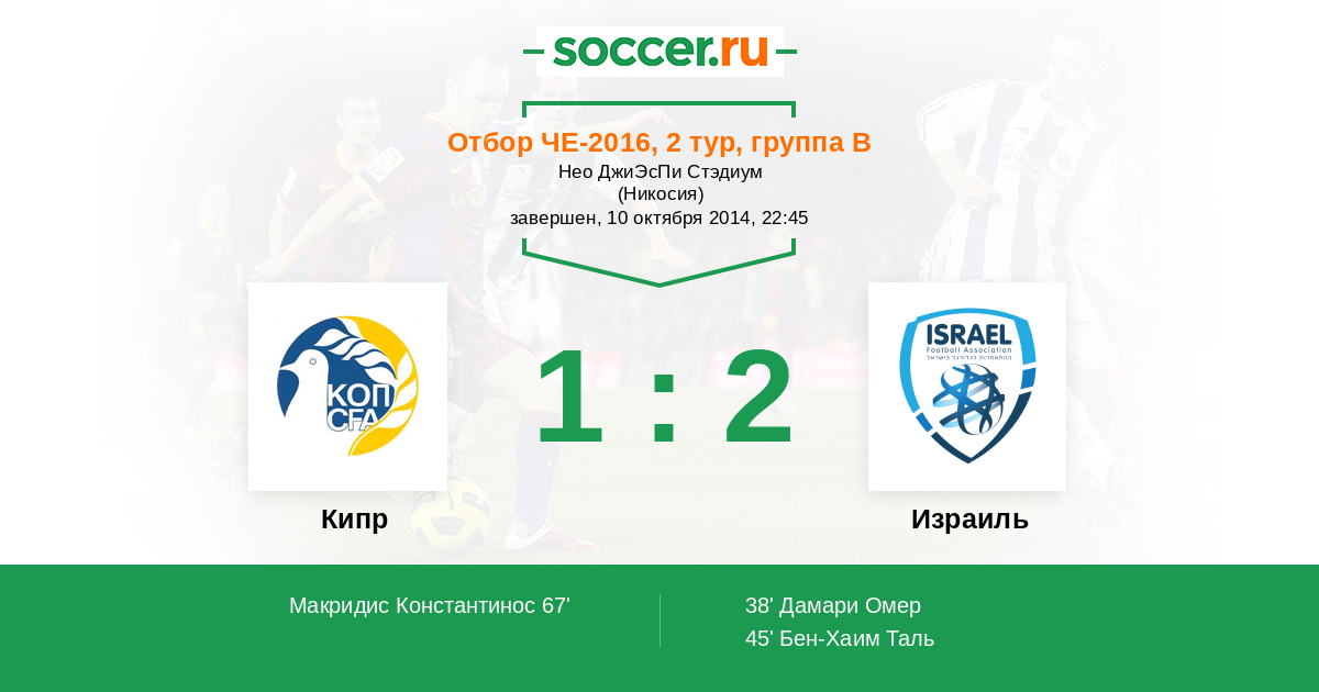 67' (1:2) Макридис Константинос (13) (Сотериу Пьерос (20))