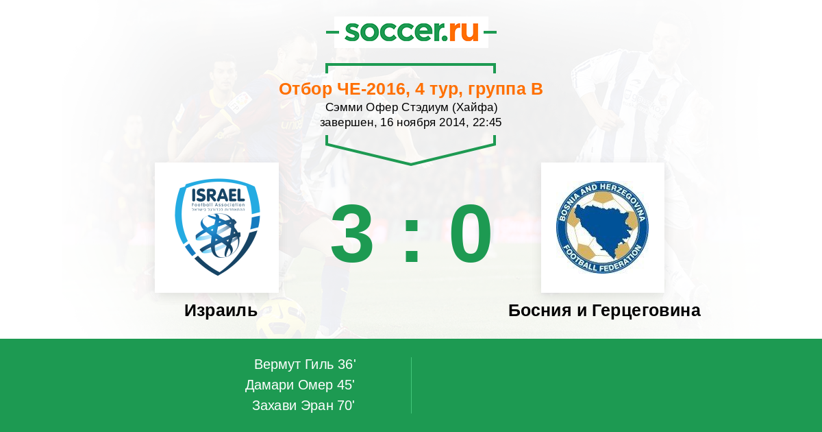Запасные: 9 Рафаэлов Лиор (с 70'), 4 Биттон Нир (с 74'), 15 Давидзаде Офир (с 78'), 5 Гершон Рами, 8 Хемед Томер, 10 Барда Элианив, 11 Шехтер Итай, 16 Бузагло Маор-Бар, 17 Саар Бен, 23 Хаймов Гай, 19 Элькаям Одед, 1 Клейман Борис
