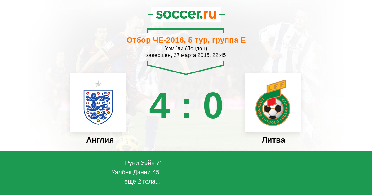 Запасные: 18 Кейн Харри (с 71'), 20 Баркли Росс (с 71'), 14 Уолкотт Тео (с 76'), 21 Гиббс Киран, 15 Ягелка Фил, 16 Милнер Джеймс, 17 Таунсенд Эндрос, 12 Смоллинг Крис, 13 Батленд Джек, 22 Уокер Кайл, 23 Грин Роберт, 19 Мэйсон Райан
