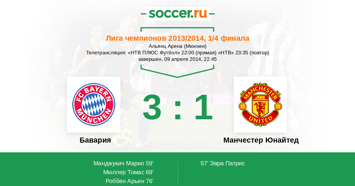 59' (1:1) Манджукич Марио (9) (Рибери Франк (7))