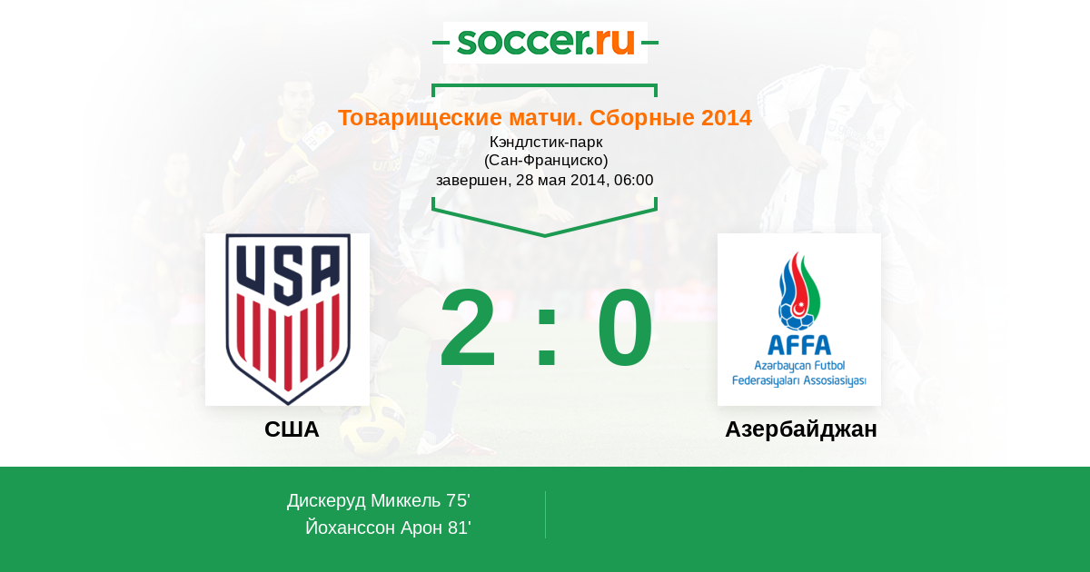 81' (2:0) Йоханссон Арон (9) (Дэвис Брэд (14))