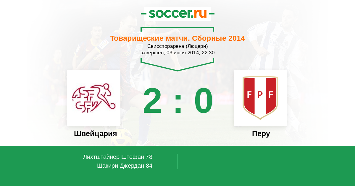 78' (1:0) Лихтштайнер Штефан (2) (Родригес Рикардо (13))
