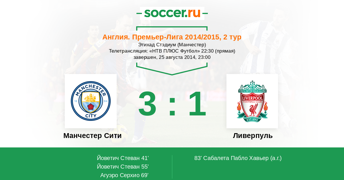 69' (3:0) Агуэро Серхио (16) (Навас Хесус (15))