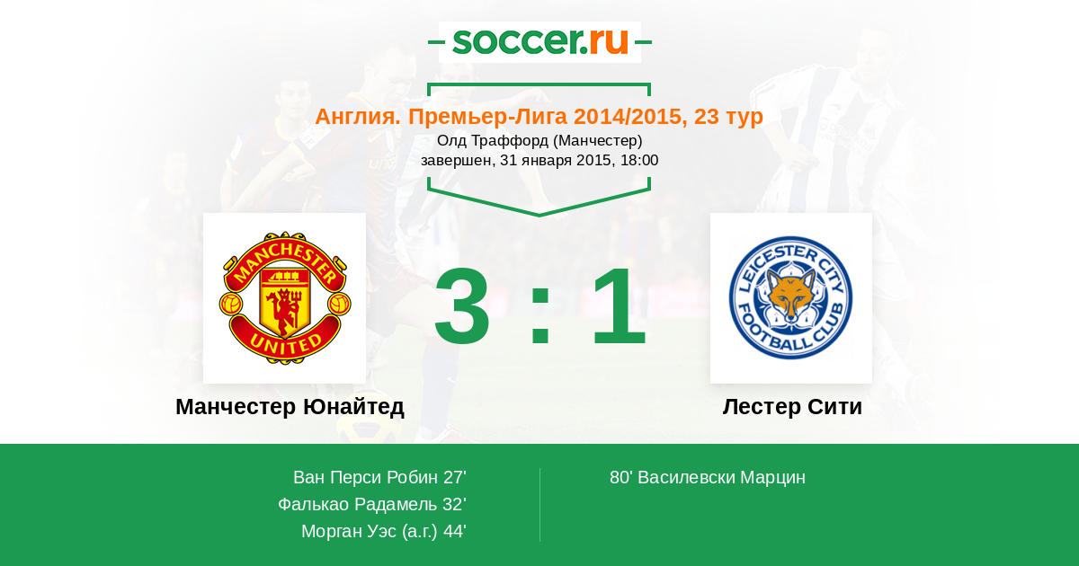 Запасные: 33 МакНэйр Патрик (с 68'), 8 Мата Хуан Мануэль (с 77'), 49 Уилсон Джеймс (с 80'), 12 Смоллинг Крис, 21 Эррера Андер, 31 Феллаини Маруан, 32 Вальдес Виктор