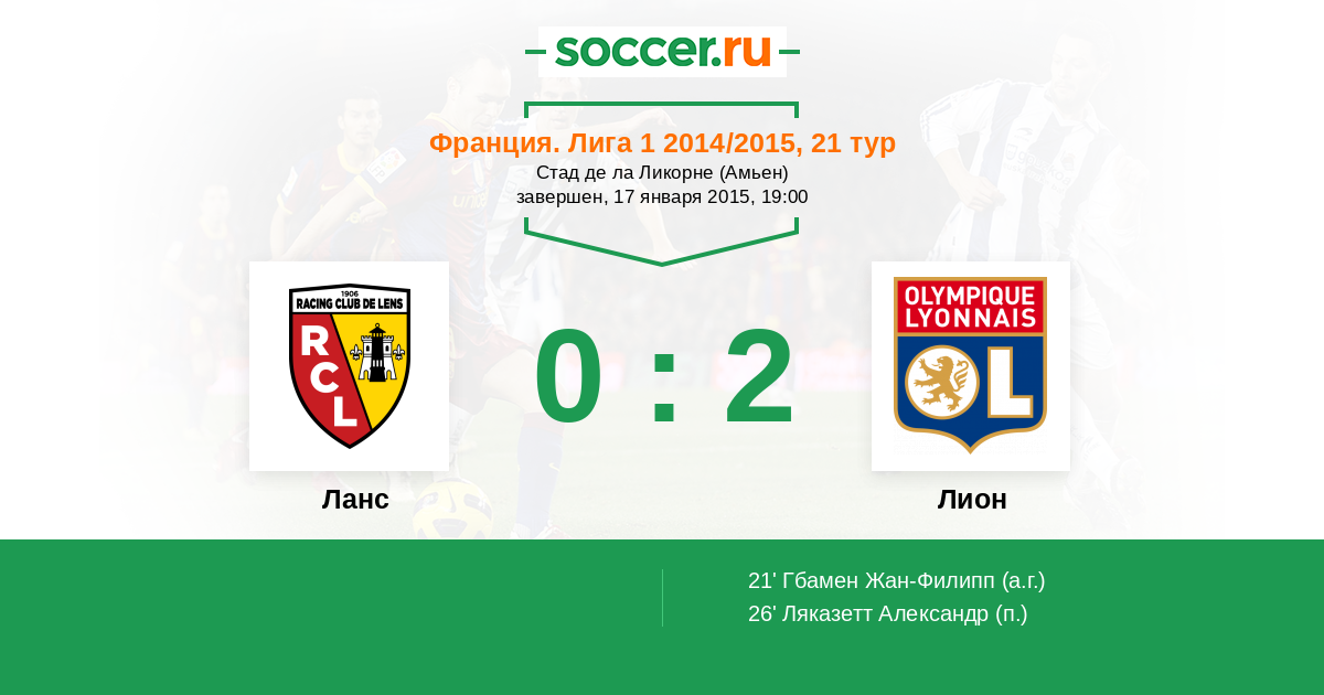 21' (0:1) Автогол Гбамен Жан-Филипп (25)