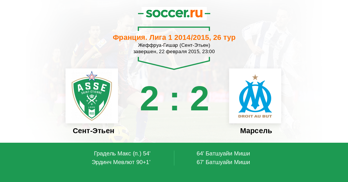 67' (1:2) Батшуайи Миши (22) (Алессандрини Ромэйн (11))