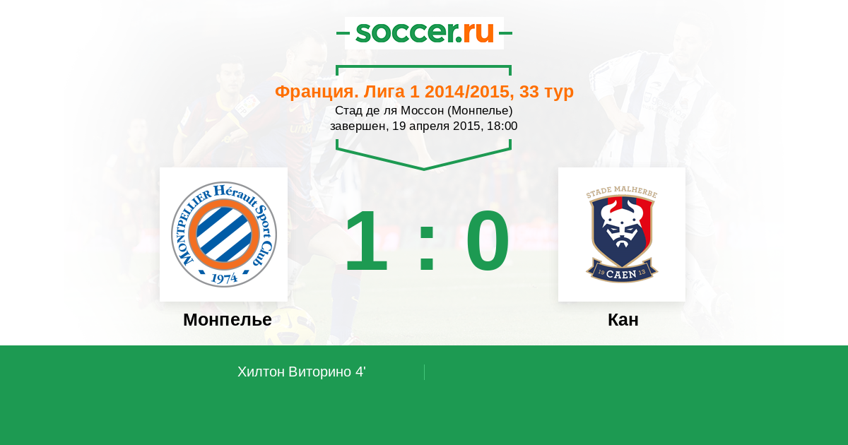 4' (1:0) Хилтон Виторино (4) (Мунье Антони (7))