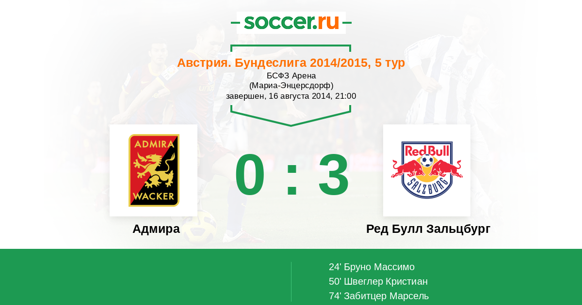24' (0:1) Бруно Массимо (77) (Забитцер Марсель (7))