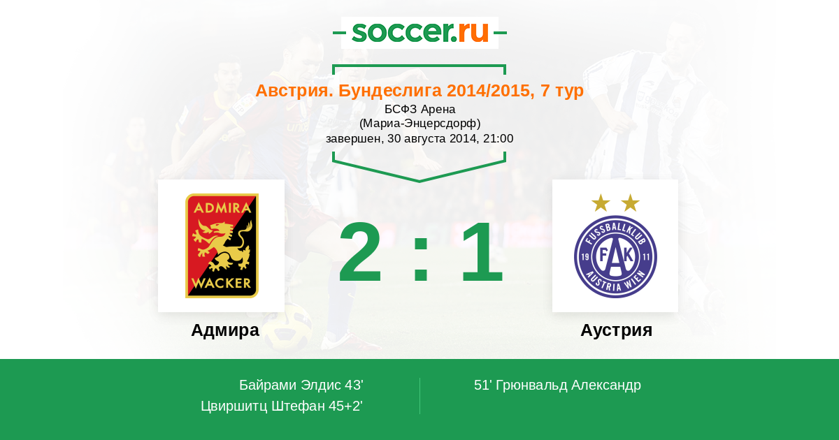 51' (2:1) Грюнвальд Александр (10) (Ройер Даниэль (28))