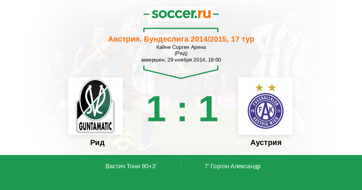 Запасные: 6 Ляйтгеб Марио (с 57'), 7 Майлингер Марко (с 67'), 29 Зуттнер Маркус (с 84'), 11 Камара Ола, 15 Рамсебнер Кристиан, 27 Квасина Марко, 31 Хаджикич Осман