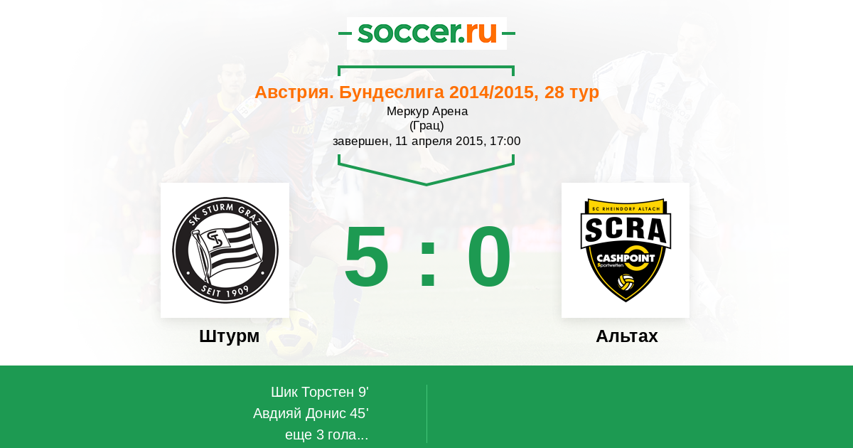 82' (5:0) Грубер Андреас (22) (Авдияй Донис (77))