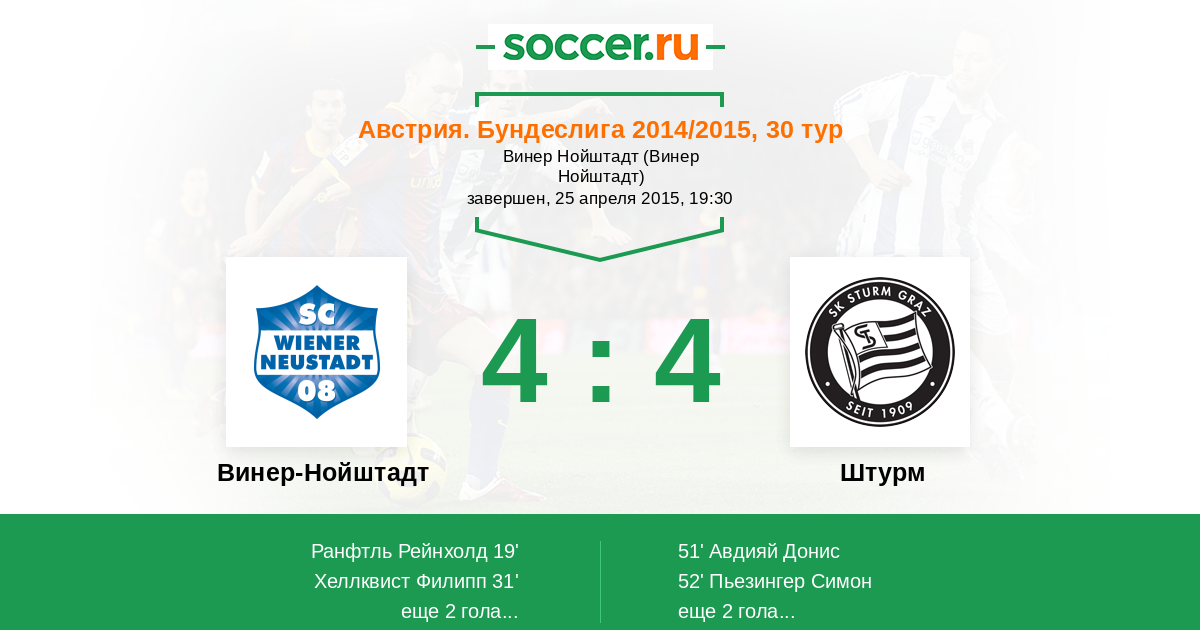 65' (3:2) Ранфтль Рейнхолд (17) (Кайнц Тобиас (14))