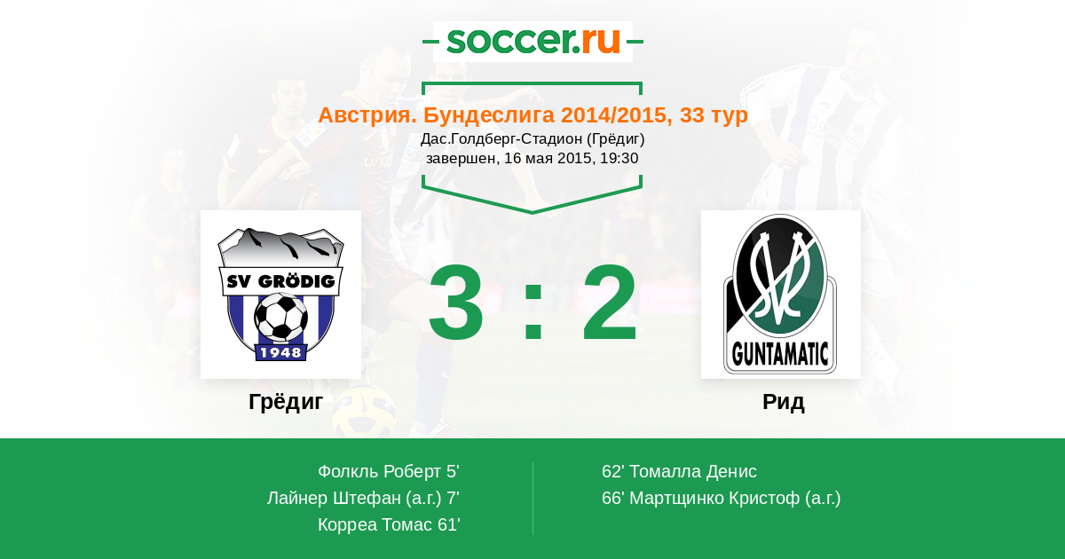 66' (3:2) Автогол Мартщинко Кристоф (32)
