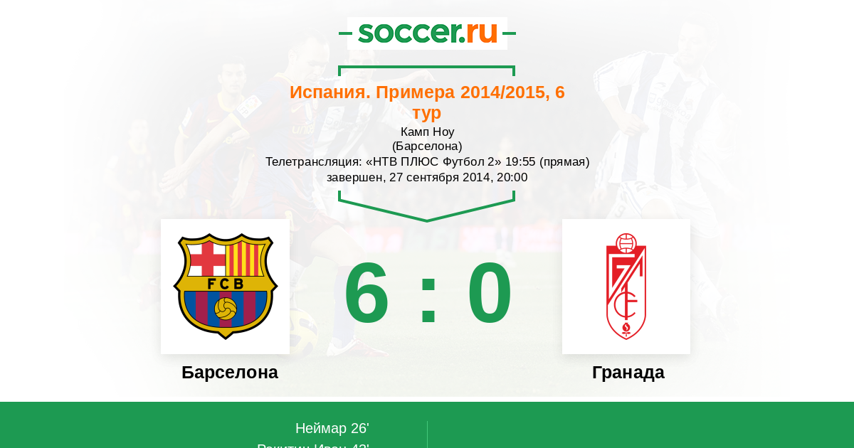 43' (2:0) Ракитич Иван (4) (Месси Лионель (10))