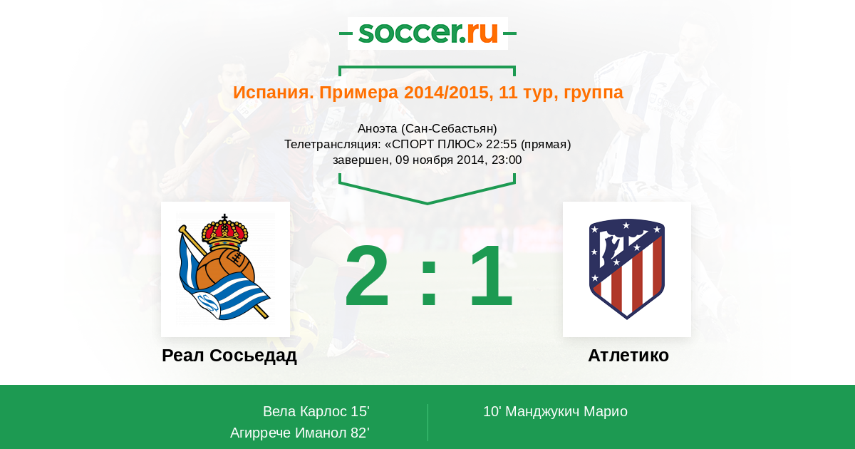 10' (0:1) Манджукич Марио (9) (Гарсия Рауль (8))