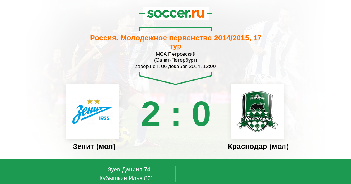 Зенит (мол) - Краснодар (мол)
