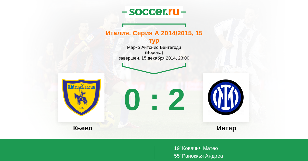 55' (0:2) Раноккья Андреа (23) (Д'Амброзио Данило (33))