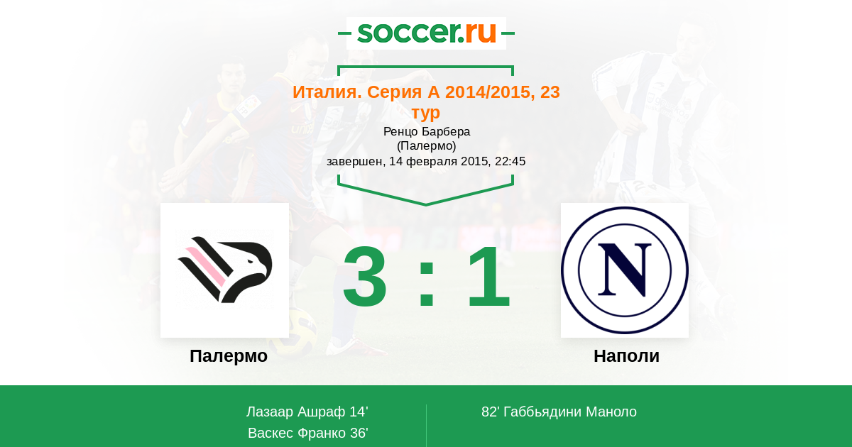 14' (1:0) Лазаар Ашраф (7) (Васкес Франко (20))